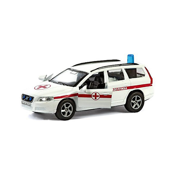 Машина Volvo V70 «Медслужба» Пламенный мотор представляет собой копию настоящего автомобиля. У машинки открываются двери, на крыше установлена мигалка. Игрушка оснащена световыми и звуковыми эффектами, которые делают игру еще увлекательней. Выполнена машинка из прочного металла.