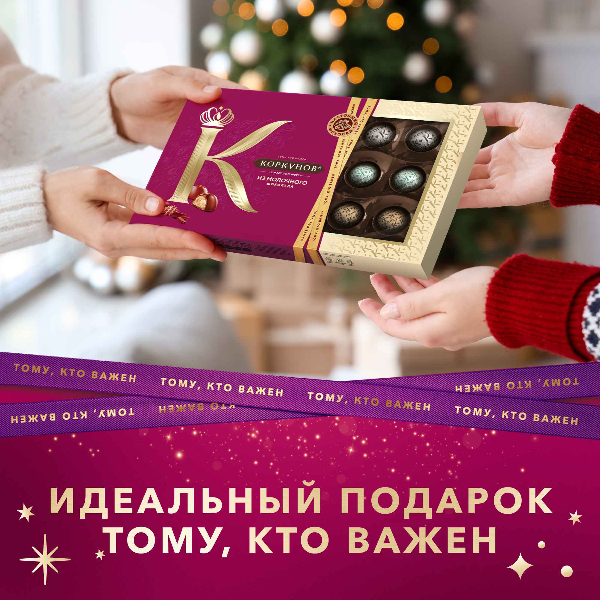 Коллекция конфет Коркунов из молочного шоколада с цельным фундуком, грецким орехом, вафльной крошкой и ореховой начинкой, подарочный набор 165г