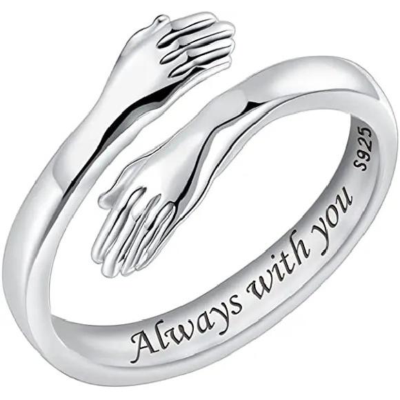 Кольца для объятий из стерлингового серебра для женщин, серебряные обнимающие руки, кольцо с открытым обещанием, ювелирные изделия, обнимающие руки, пары, свадьба