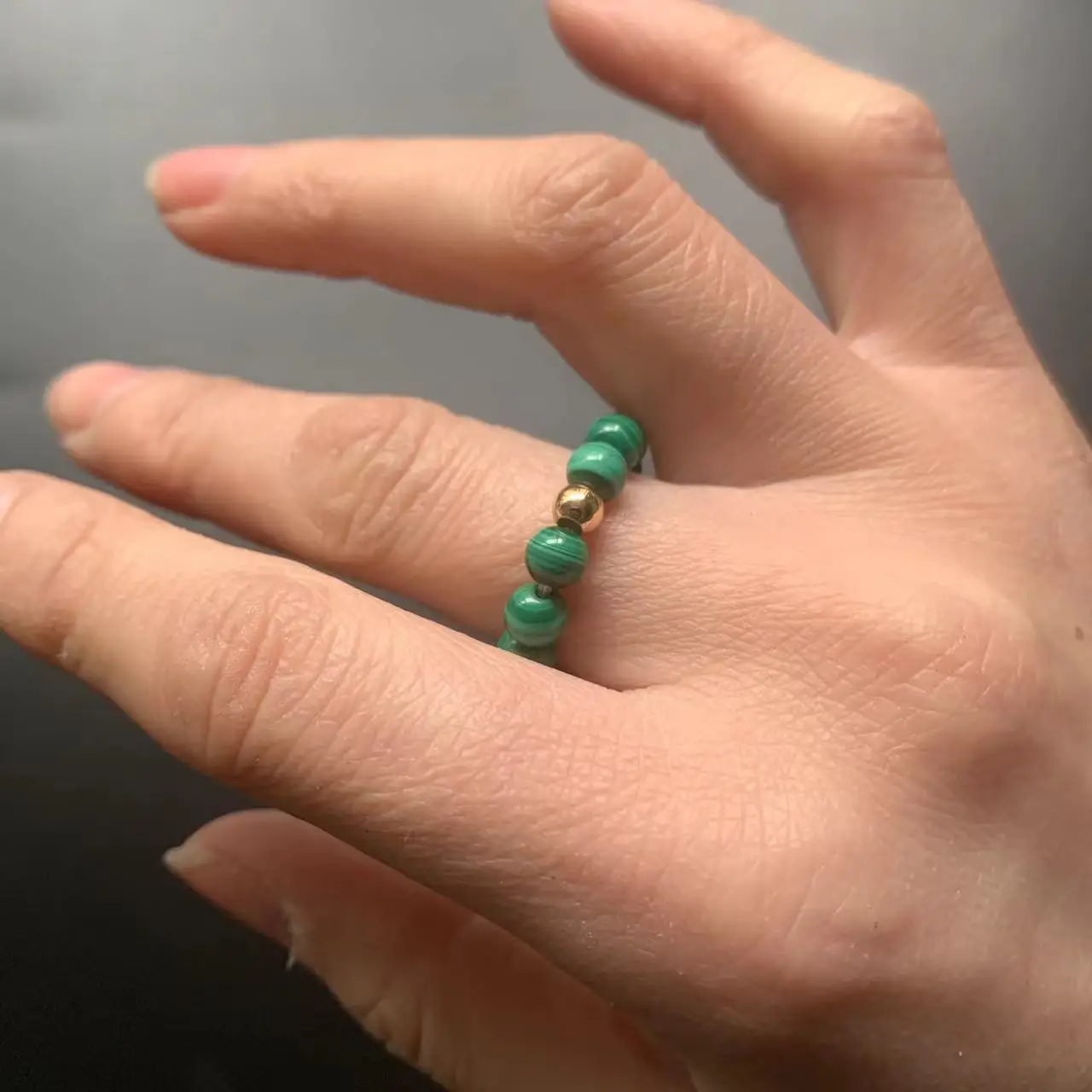 Кольца из натурального камня, бриллианты 4 мм, камень из Малахита, кристаллическое кольцо, стрейчевая нить, золото 14 к, бриллианты 1 шт.