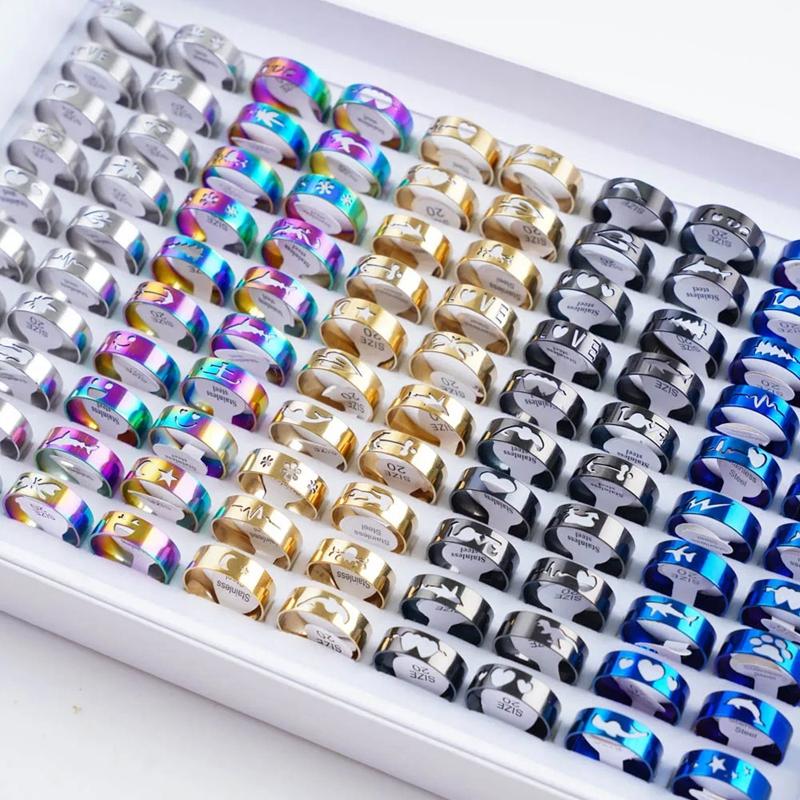 Кольца из нержавеющей стали, 20 шт., модные ювелирные изделия с узором лазерной резки серебряный