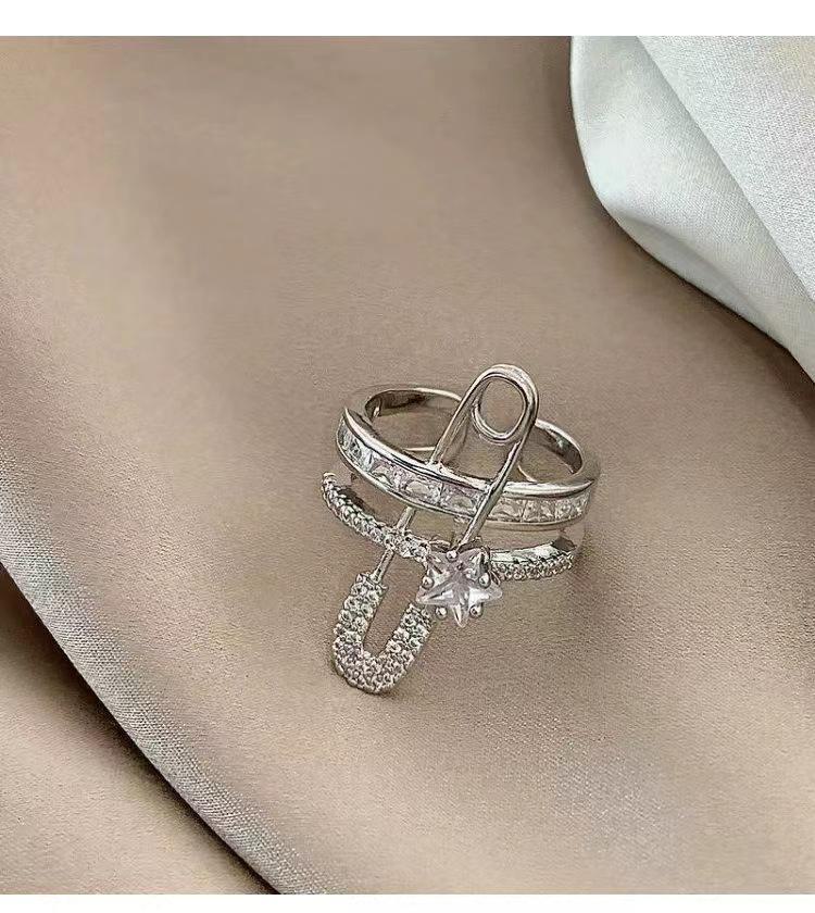 Кольцо-брошь с бриллиантами Starlight: Роскошное, нишевое, регулируемое двухслойное кольцо в форме звезды. Brooch Square Diamond Ring