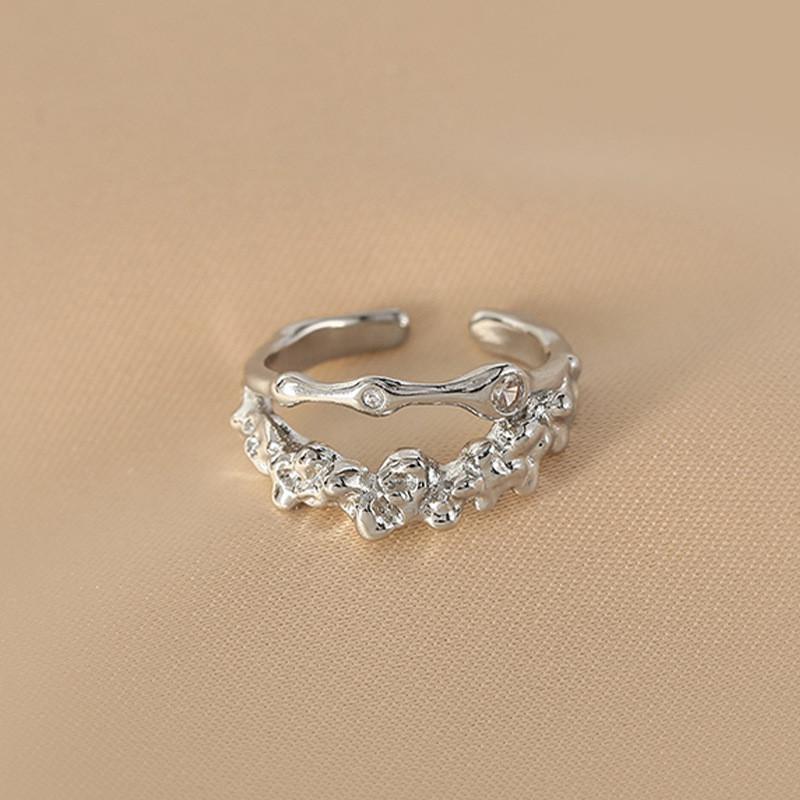 Кольцо в уникальном стиле, нерегулярное, лавовое, женское, открытое, регулируемое, с покрытием из белого золота