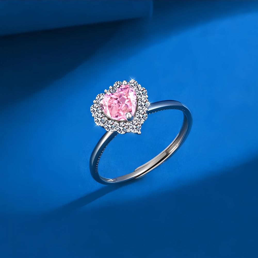 Кольцо в форме сердца из стерлингового серебра S925 с цирконием, регулируемое, розовое, для девочек розовый