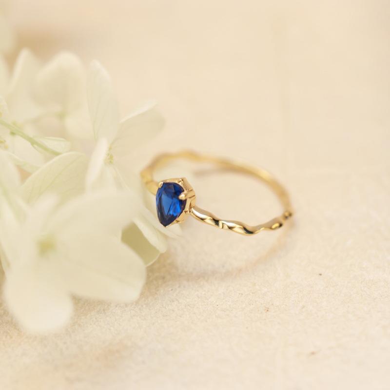 Кольцо в японском стиле из позолоченного металла с цирконом в форме капли для женщин - Элегантный геометрический дизайн US Size 8