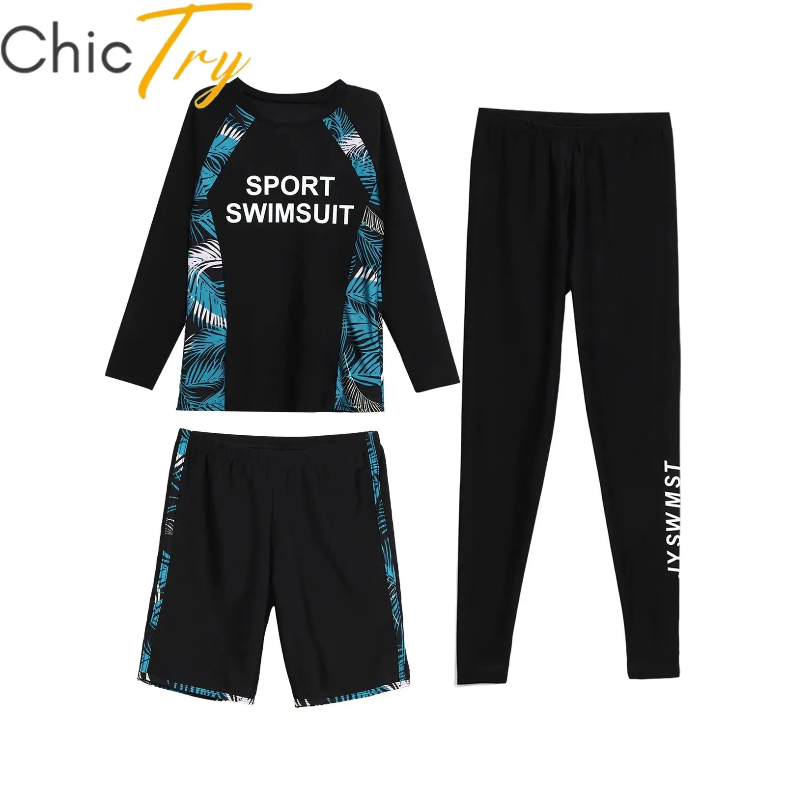 Kids Boys 3PCS Swimsuit Swim Sets Swimwear Outfits Letter Printed Top with Shorts and Pants Suit for Snorkeling Swimming Surfing