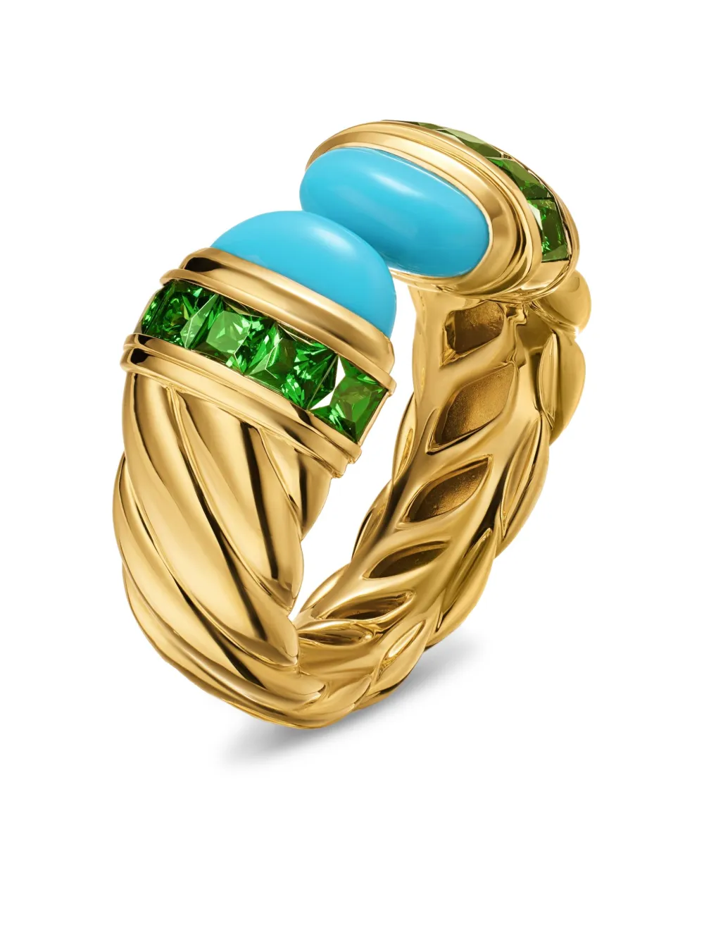 Кольцо из желтого золота с бирюзой и цаворитом David Yurman, золотой