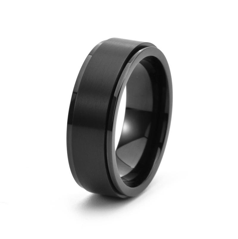 Кольцо из матовой титановой стали с вращающимся элементом 8 мм для мужчин, модные минималистичные аксессуары для снятия стресса 12 чёрный