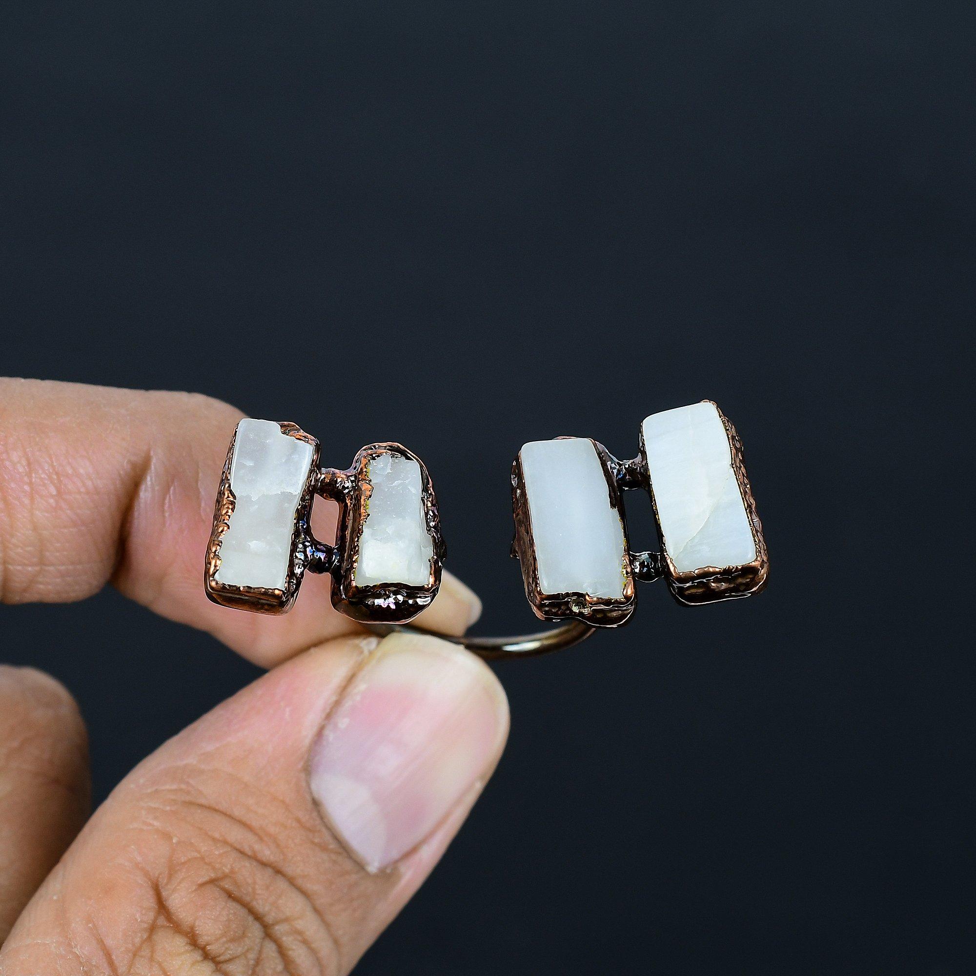 Кольцо из прозрачного кварца ручной работы, кольцо из электроформированной меди, антикварное украшение, регулируемое кольцо, подарок на помолвку