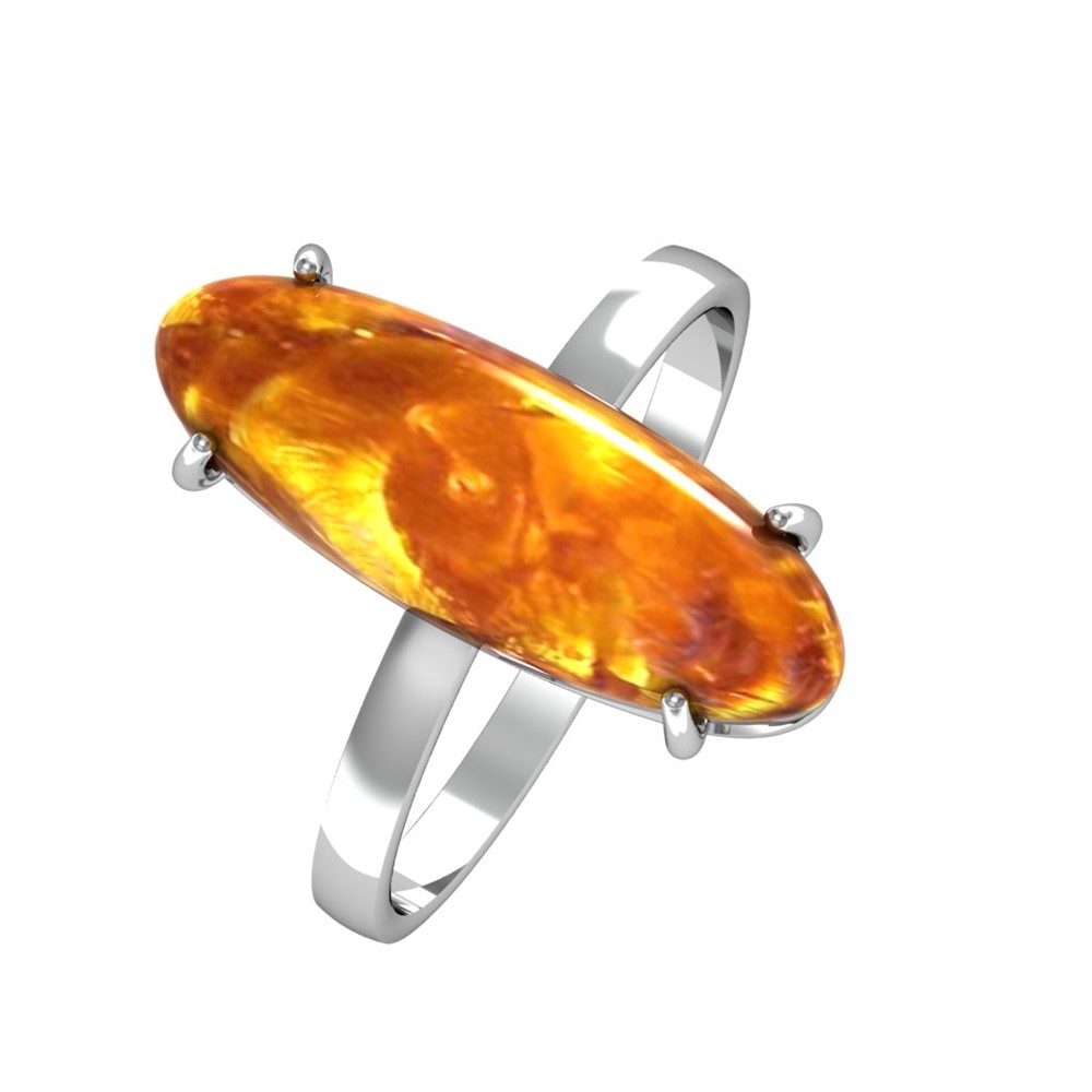 Кольцо выполнено из серебра 925 пробы, покрытие родирование, вставки 1 янтарь прессованный, вес 3,25 гр.