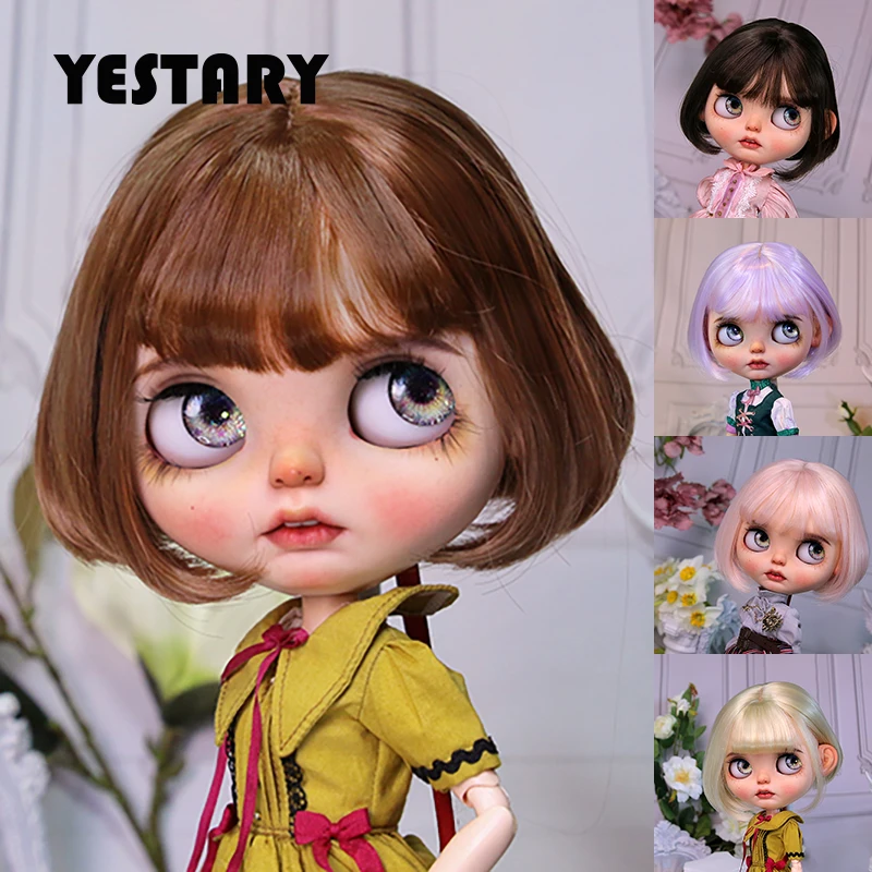 YESTARY BJD Doll Wig For Blythe Size Doll Accessories Wig Toy Tress High Temperature Wire BJD Mushroom Head Short Hair Air Bangs