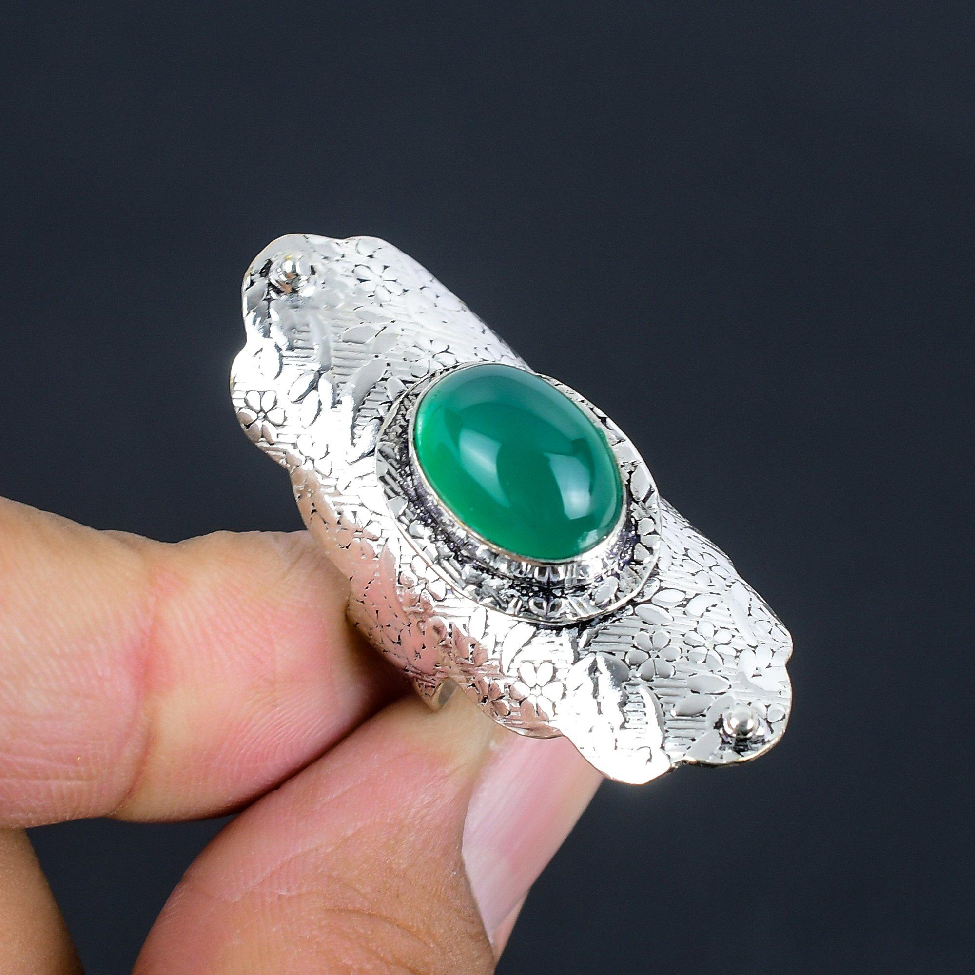 Кольцо из серебра 925 пробы с драгоценным камнем зеленого оникса, размер 7 зелёный