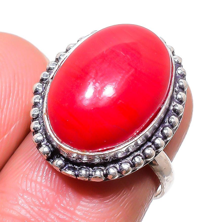 Кольцо из серебра 925 пробы с натуральным красным кораллом, размер 7, h8Q10