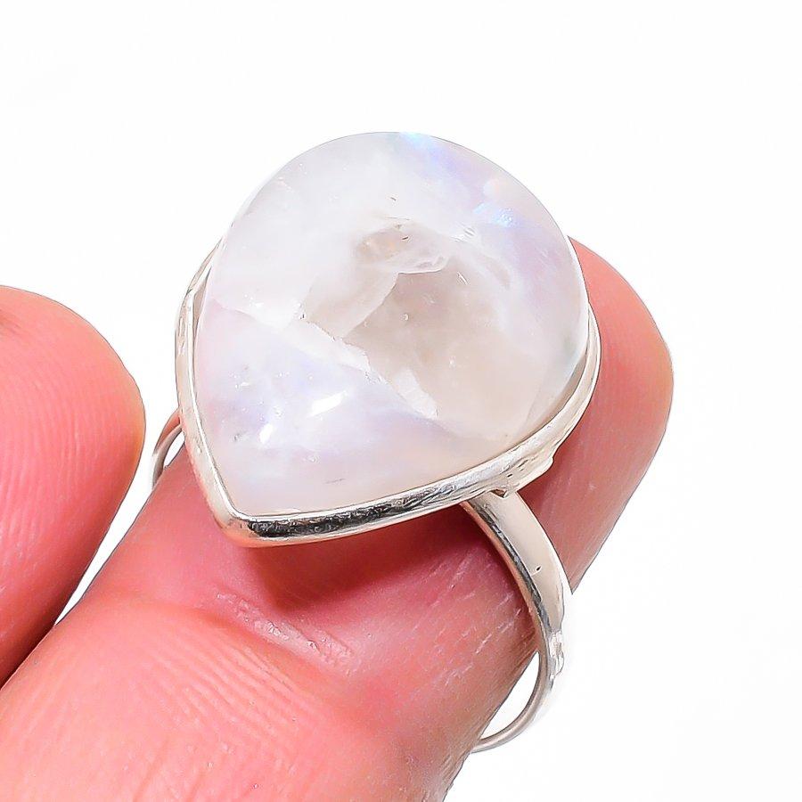 Кольцо из серебра 925 пробы с натуральным лунным камнем, размер 7,5 z4R85