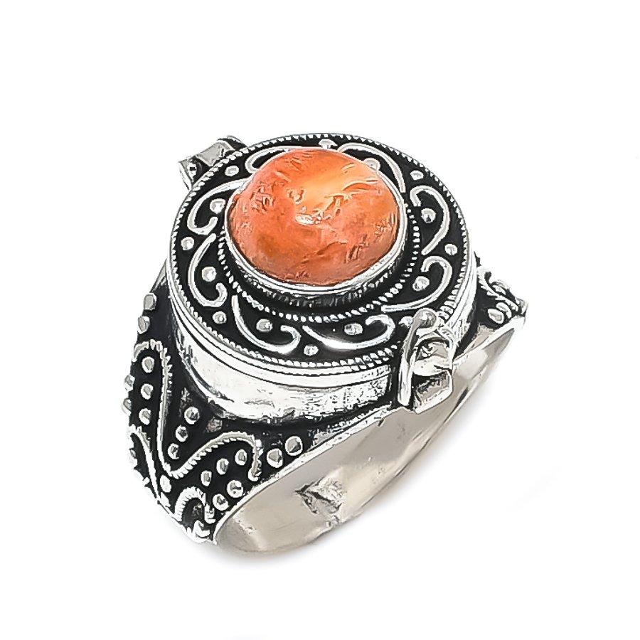 Кольцо из серебра 925 пробы с натуральным оранжевым бирюзовым драгоценным камнем, размер 9,5 a5q98
