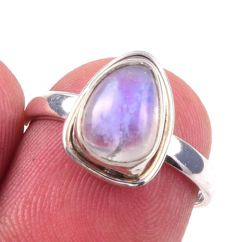 Кольцо из серебра 925 пробы с натуральным радужным лунным камнем ручной работы, размер 6 S7e82