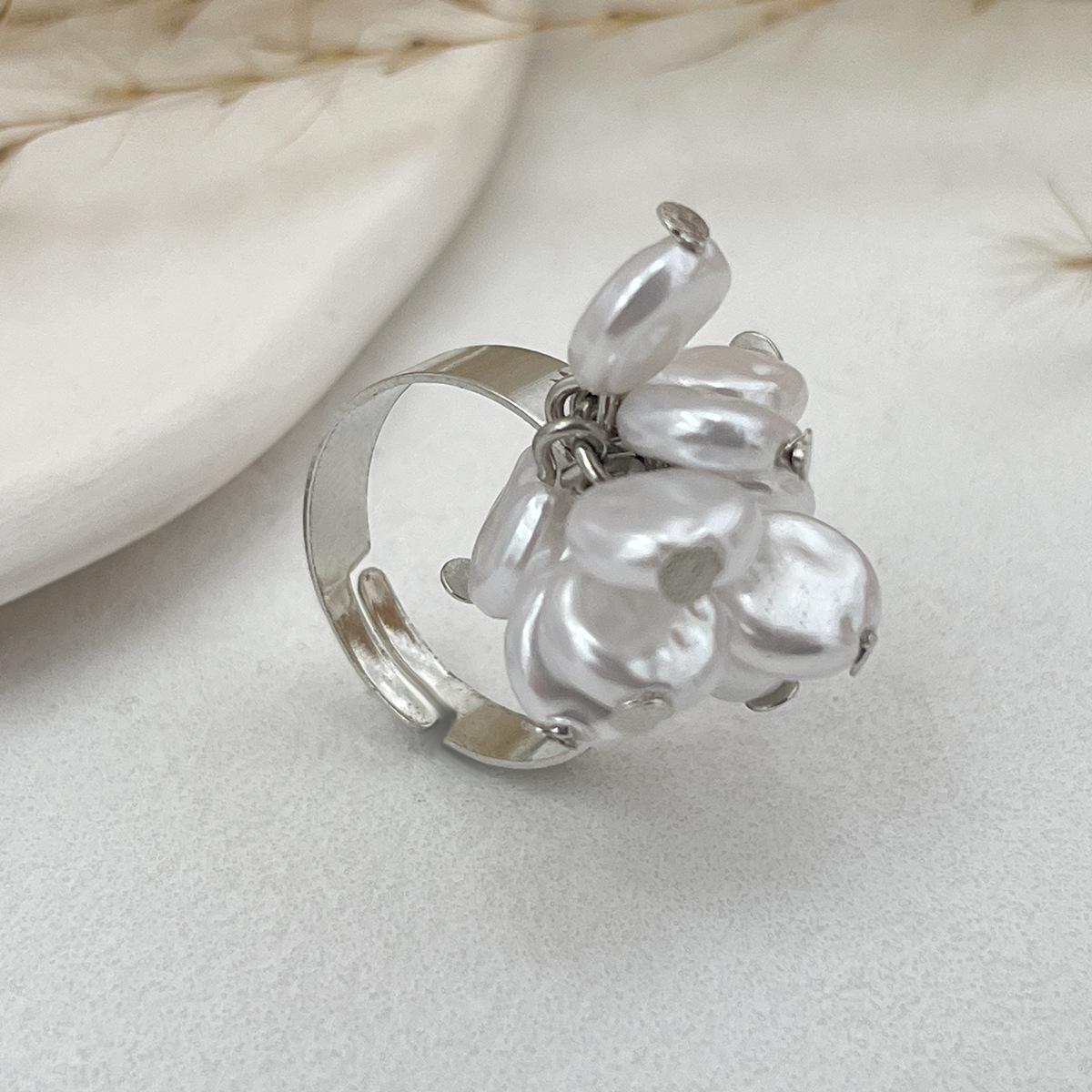 Кольцо из сплава в стиле праздника с круглым отверстием, инкрустированное жемчужным цветком, комплект колец, новое модное модное кольцо для поездок на работу и обратно слоновая кость