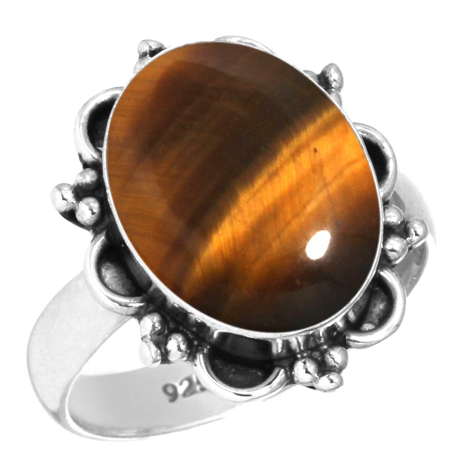 Кольцо из стерлингового серебра 925 пробы Женское Драгоценный камень Ручная работа Ювелирное изделие Свадебный подарок Малахит Радужный лунный камень Розовый кварц Красный камень Дымчатый топаз Тигровый глаз Винтаж 5.5 глаз тигра
