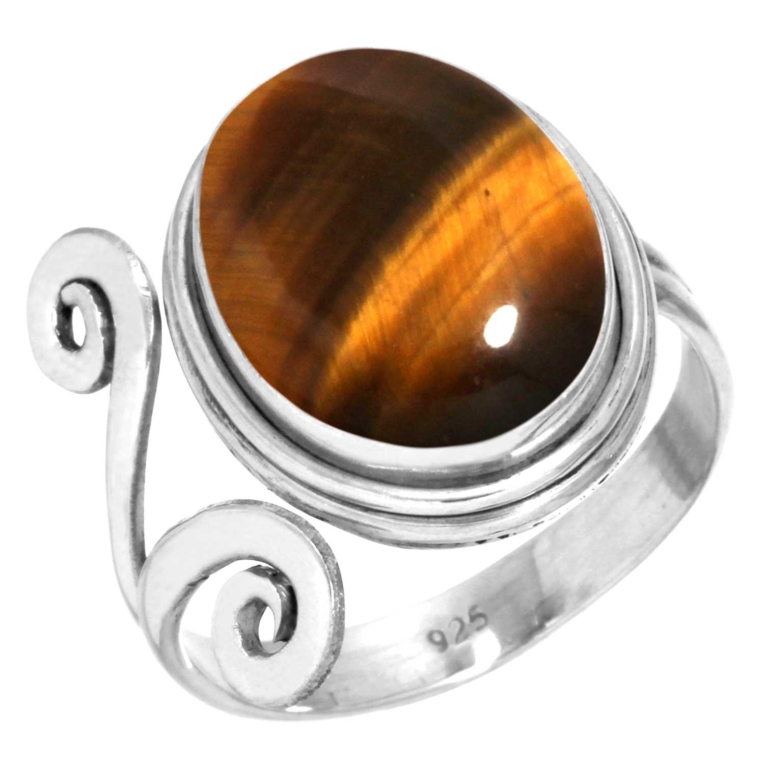 Кольцо из стерлингового серебра 925 пробы Женское Драгоценный камень Ручная работа Ювелирные изделия Пасхальный подарок Малахит Радужный лунный камень Розовый кварц Красный камень Дымчатый топаз Тигровый глаз Мода 11.5 глаз тигра