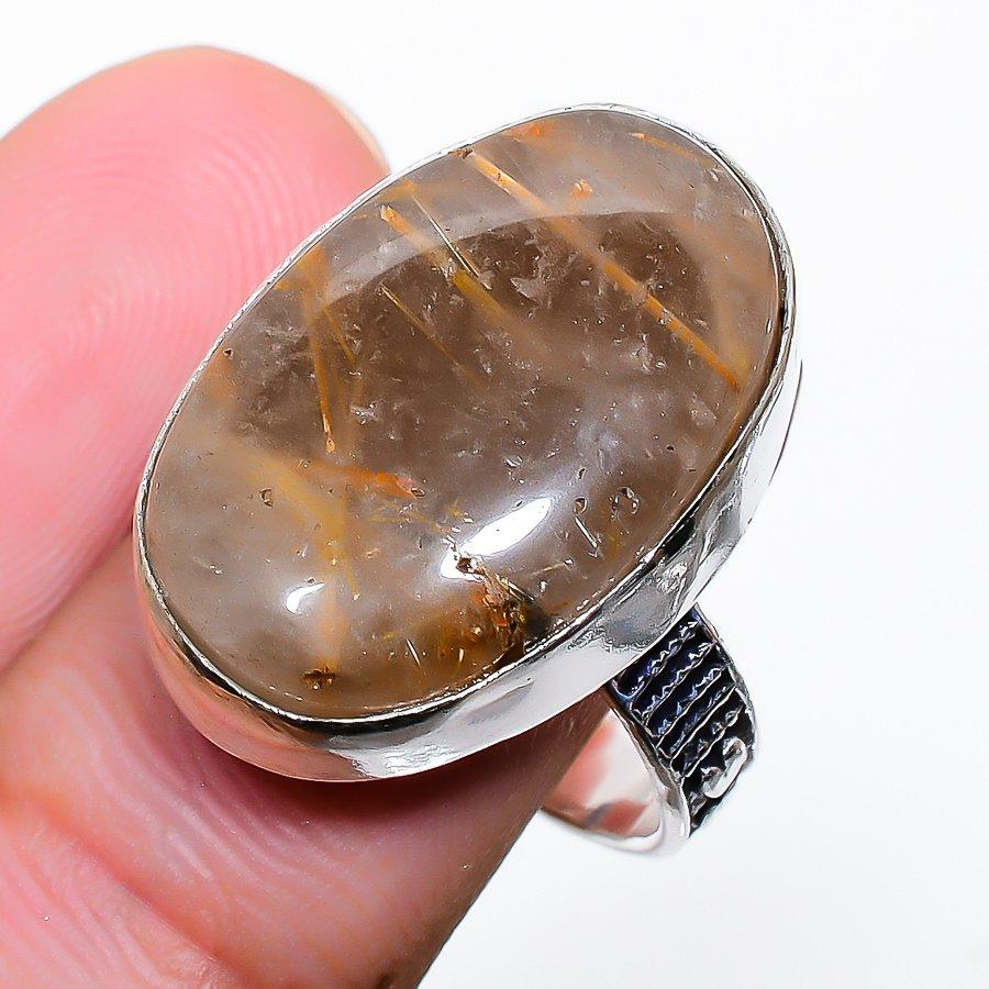 Кольцо из стерлингового серебра 925 пробы с натуральным золотым рутилом ручной работы, размер 8 c7n64