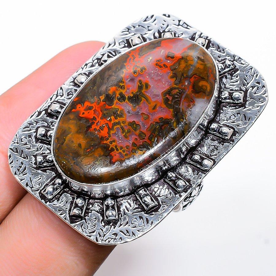 Кольцо из стерлингового серебра 925 пробы с натуральным шовным агатом ручной работы, размер 9 S6I36