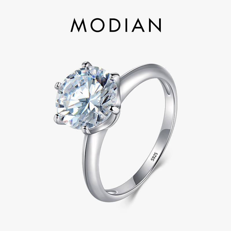Кольцо из стерлингового серебра 925 пробы MODIAN, прозрачное кольцо с шестью когтями из кубического циркония, модные классические ювелирные изделия для свадьбы и помолвки для женщин