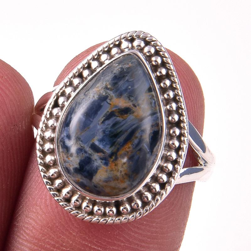 Кольцо из чистого серебра 925 пробы с натуральным драгоценным камнем Питерсит, размер 6 I1E23
