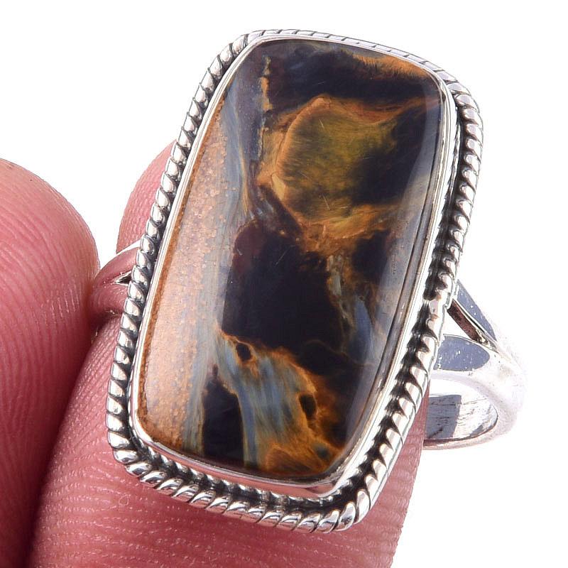 Кольцо из чистого серебра 925 пробы с натуральным камнем Питерсит, размер 10, G6K04