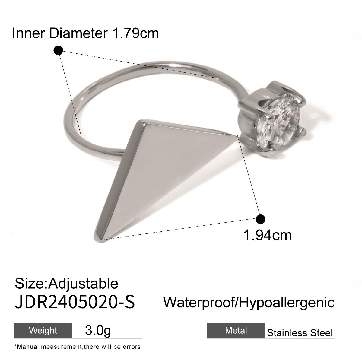 Кольцо открытое из полированного золота 18 карат с треугольным цирконом, модная бижутерия в европейском и американском стиле.