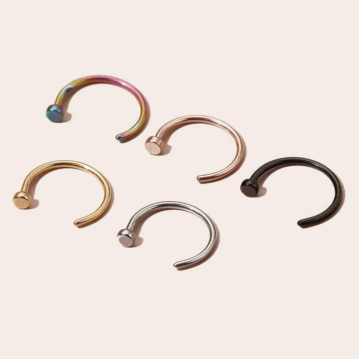 Кольцо-подкова из нержавеющей стали в форме стержня C-образной формы для прокола, гвоздь, U-образное кольцо для носа разноцветный