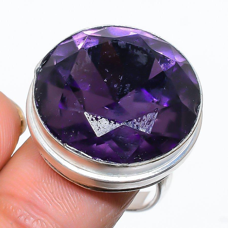 Кольцо ручной работы из стерлингового серебра 925 пробы с натуральным аметистом, размер 6,5 K6W07