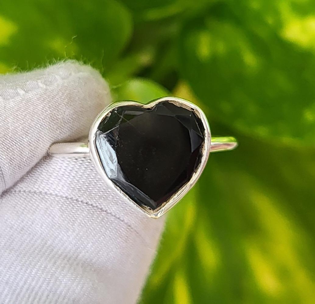 Кольцо-сердце из натурального черного оникса 925 пробы, 8,25 долл. США, подарочное кольцо A 39 8.25 US