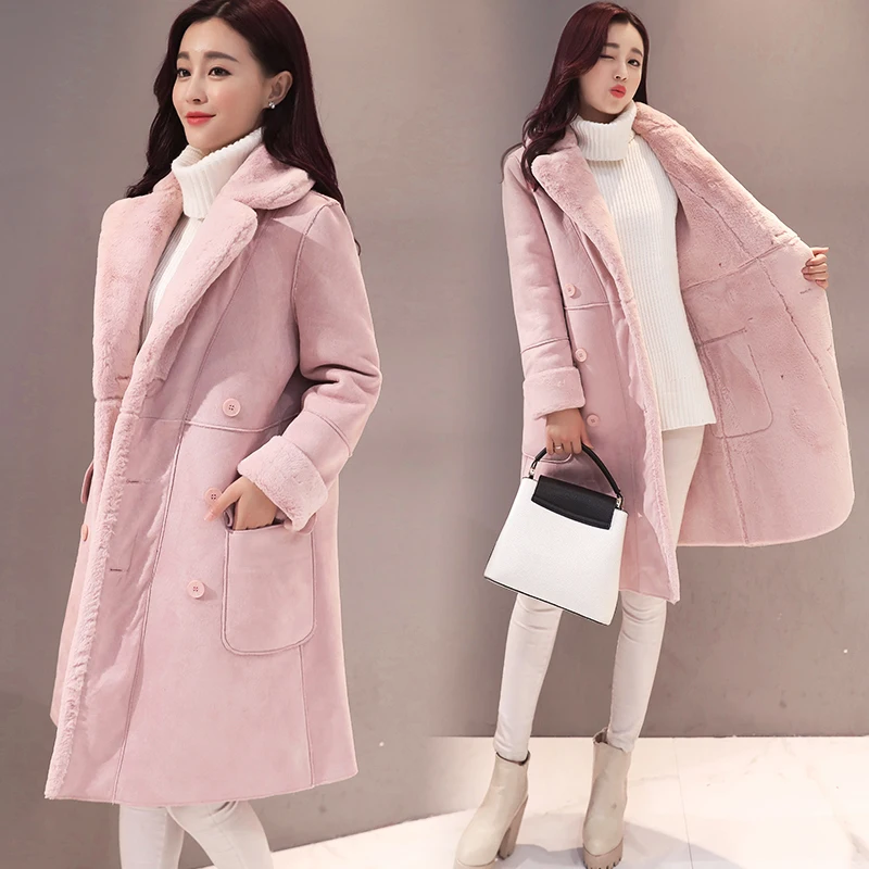 feminine mink real fur collar sheep shearing 100% wool female long winter suede jacket kj612 piux, Black