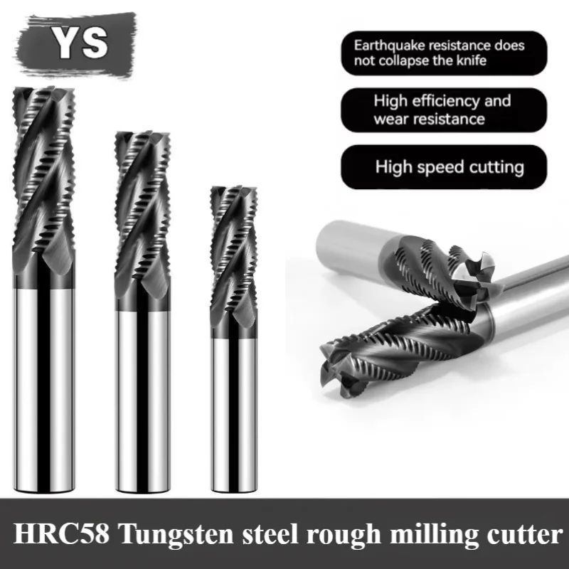 YS HRC58 Твердый сплав, 4 слота, карбид вольфрама, нанопокрытие, лезвие формы волны, грубая обработка, обработка с ЧПУ, концевая фреза