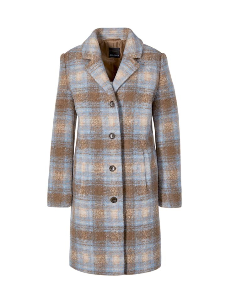 Пальто GOLDNER, цвет camel/hellblau/kariert, Бежевый, Пальто GOLDNER, цвет camel/hellblau/kariert