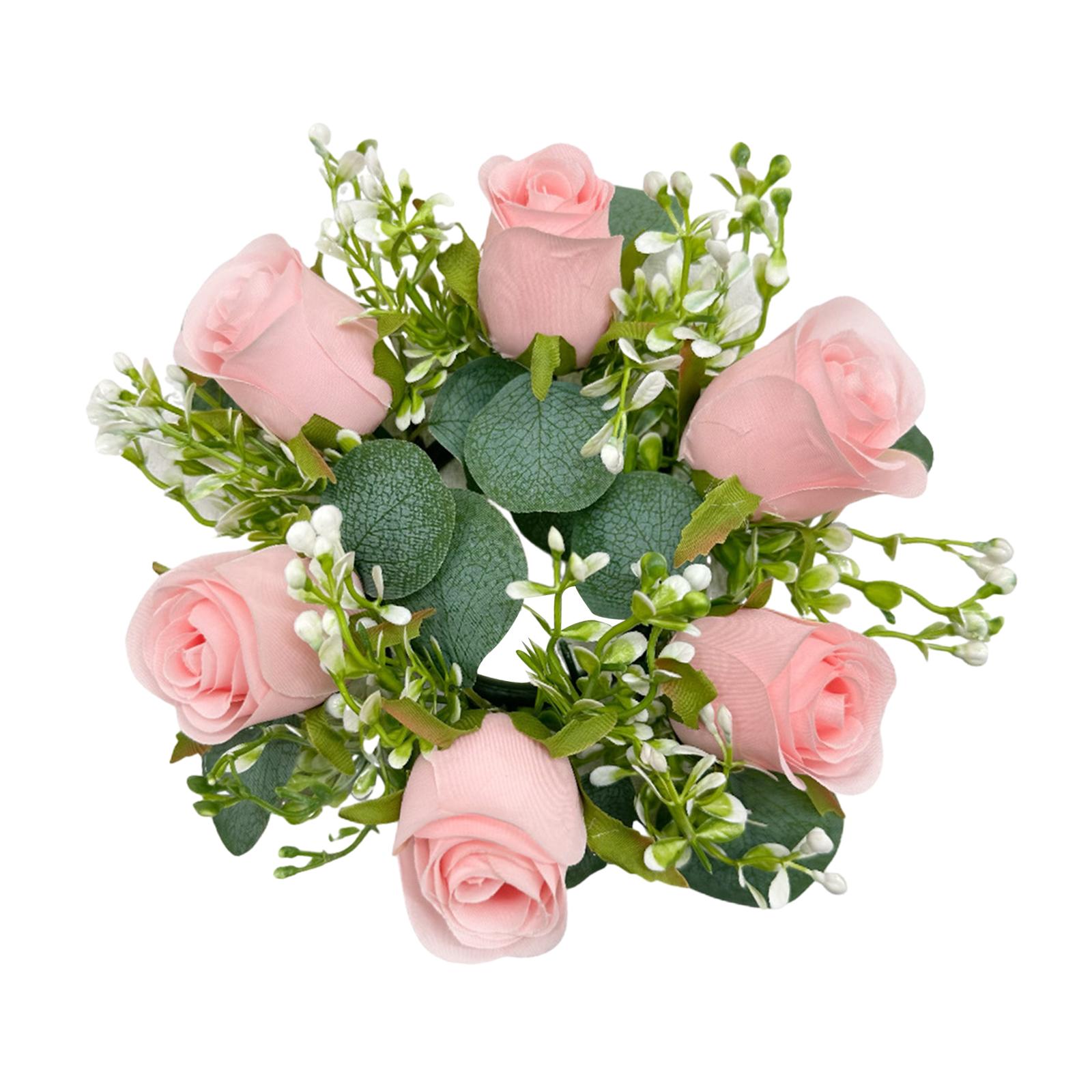 Кольцо со свечой Искусственный венок Искусственный цветок Подсвечник для дома Центральные украшения для вечеринки День благодарения Гостиная розовый