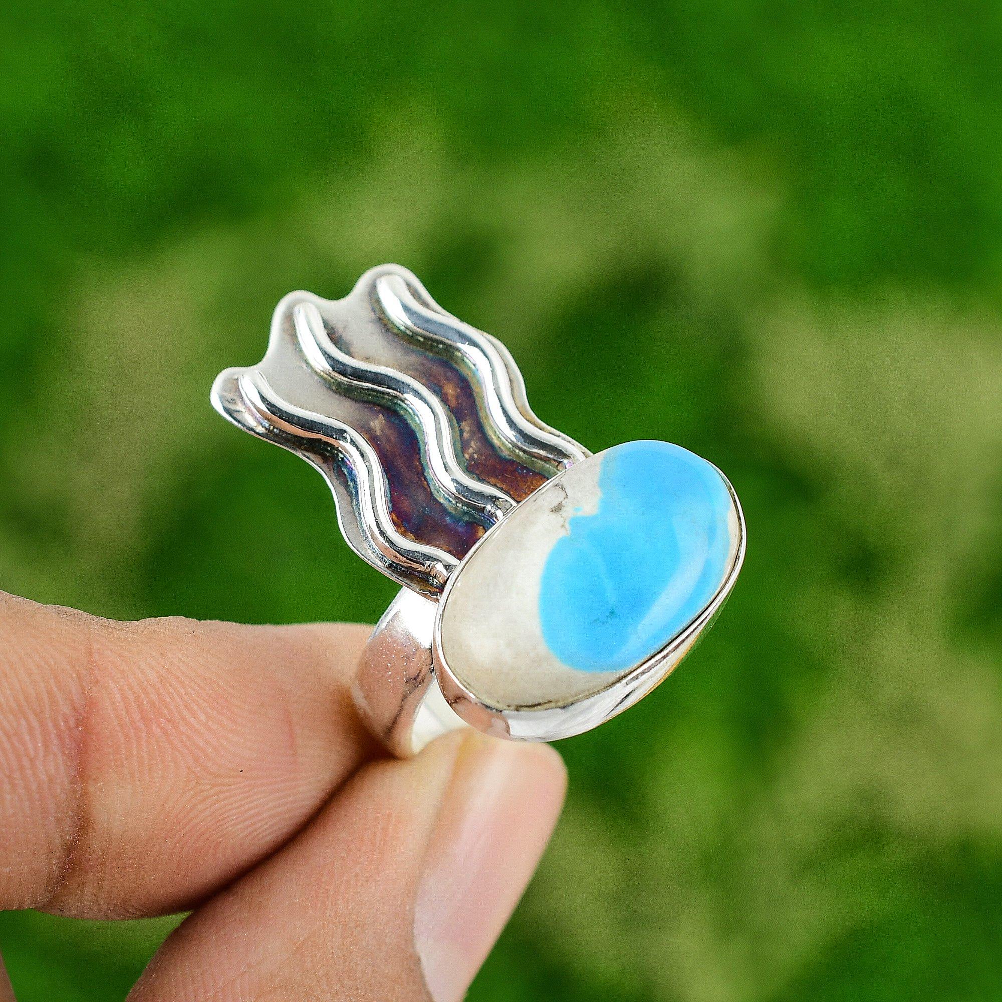 Кольцо-стек из натурального камня бирюзы Спящая красавица, размер 8,75, серебро 925 пробы 8.75