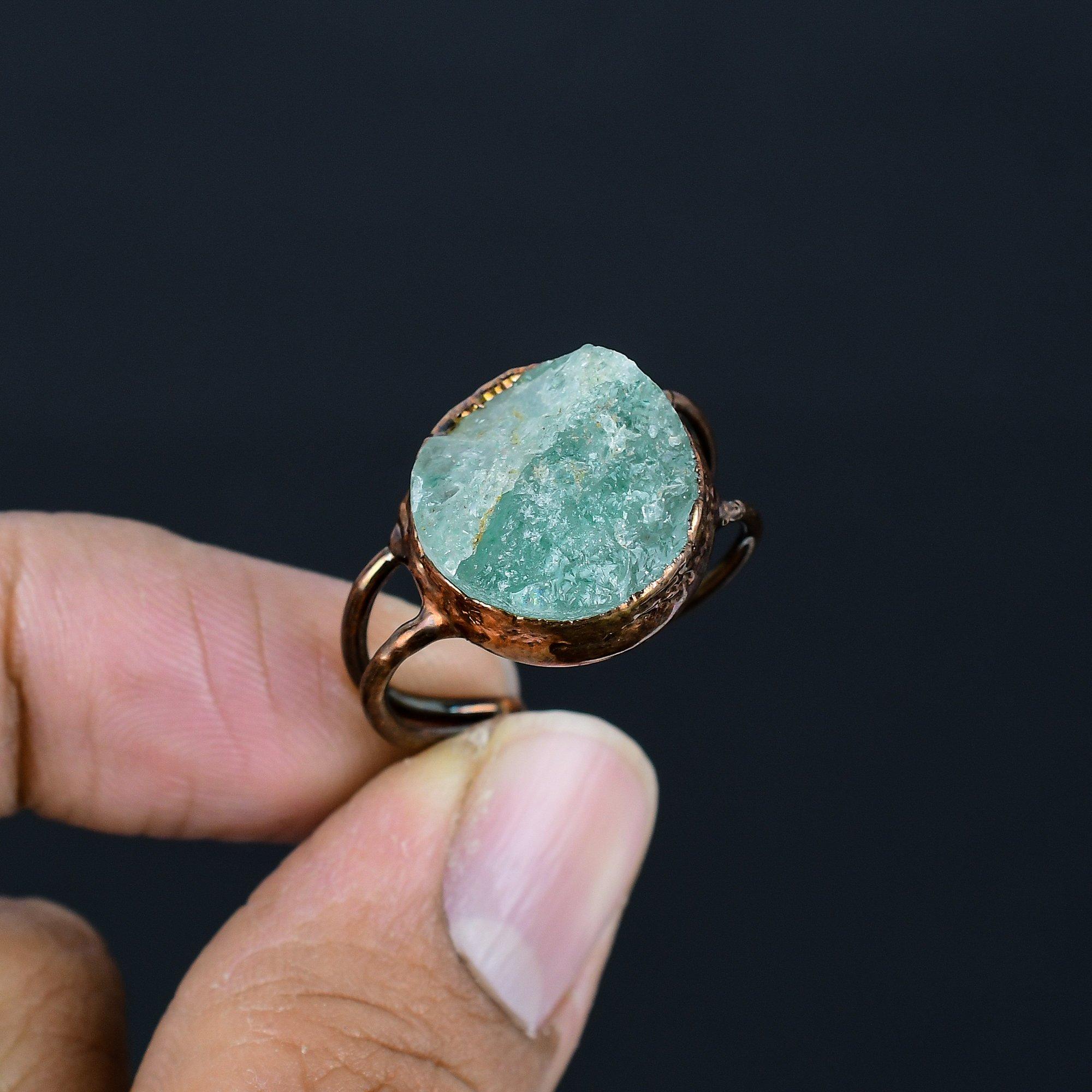 Кольцо с аквамарином ручной работы, кольцо из электроформированной меди, антикварное украшение, регулируемое кольцо, подарок на помолвку