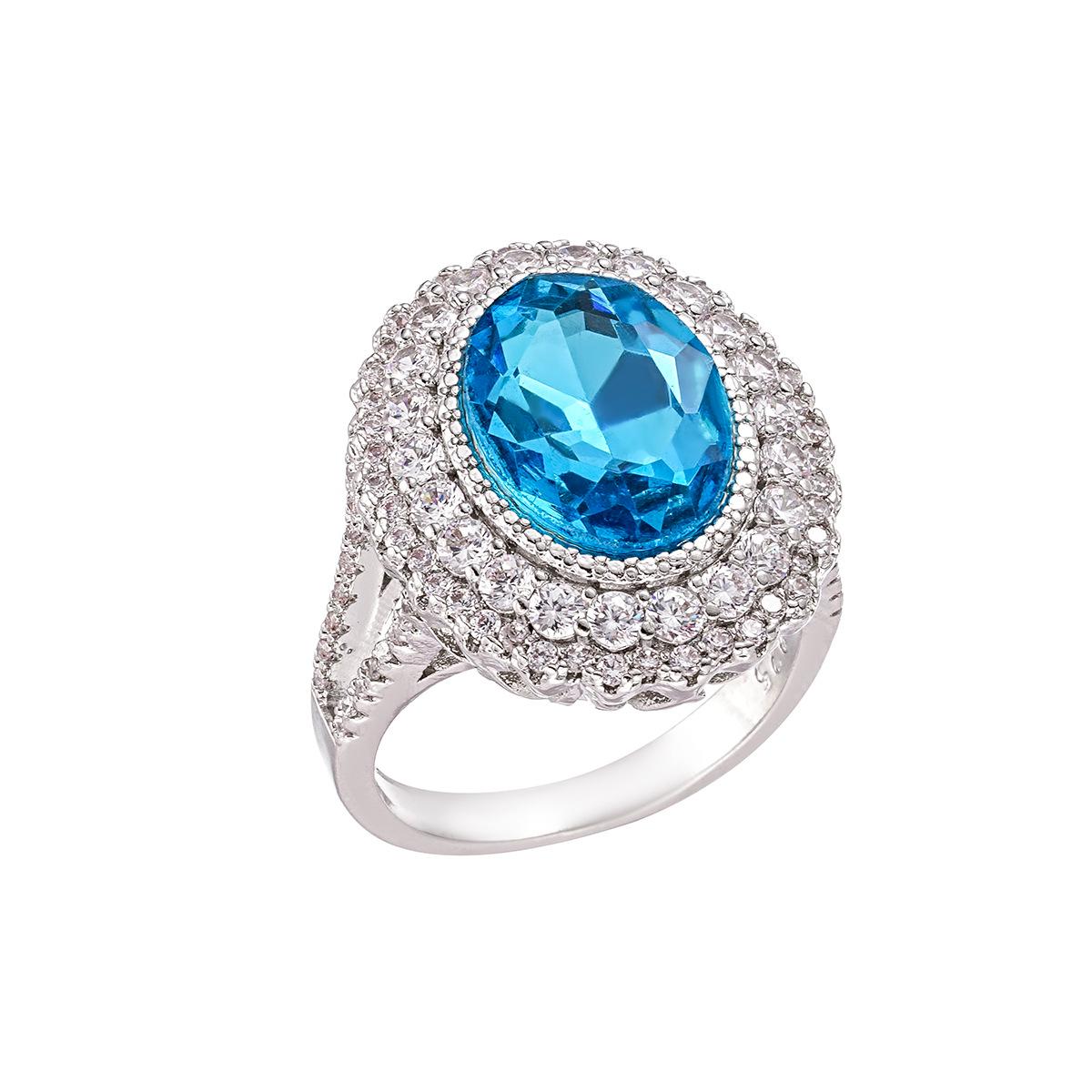 Кольцо с аквамарином и цирконом: Блестящие, красочные украшения на указательный палец в модном холодном стиле Size 10 небесно-голубой