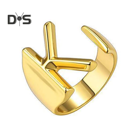 Кольцо с алфавитом, 26 английских букв, кольцо с регулируемым отверстием, золотое, полированное, легкое, из сплава, ювелирное украшение на палец для вечеринок и повседневного ношения K