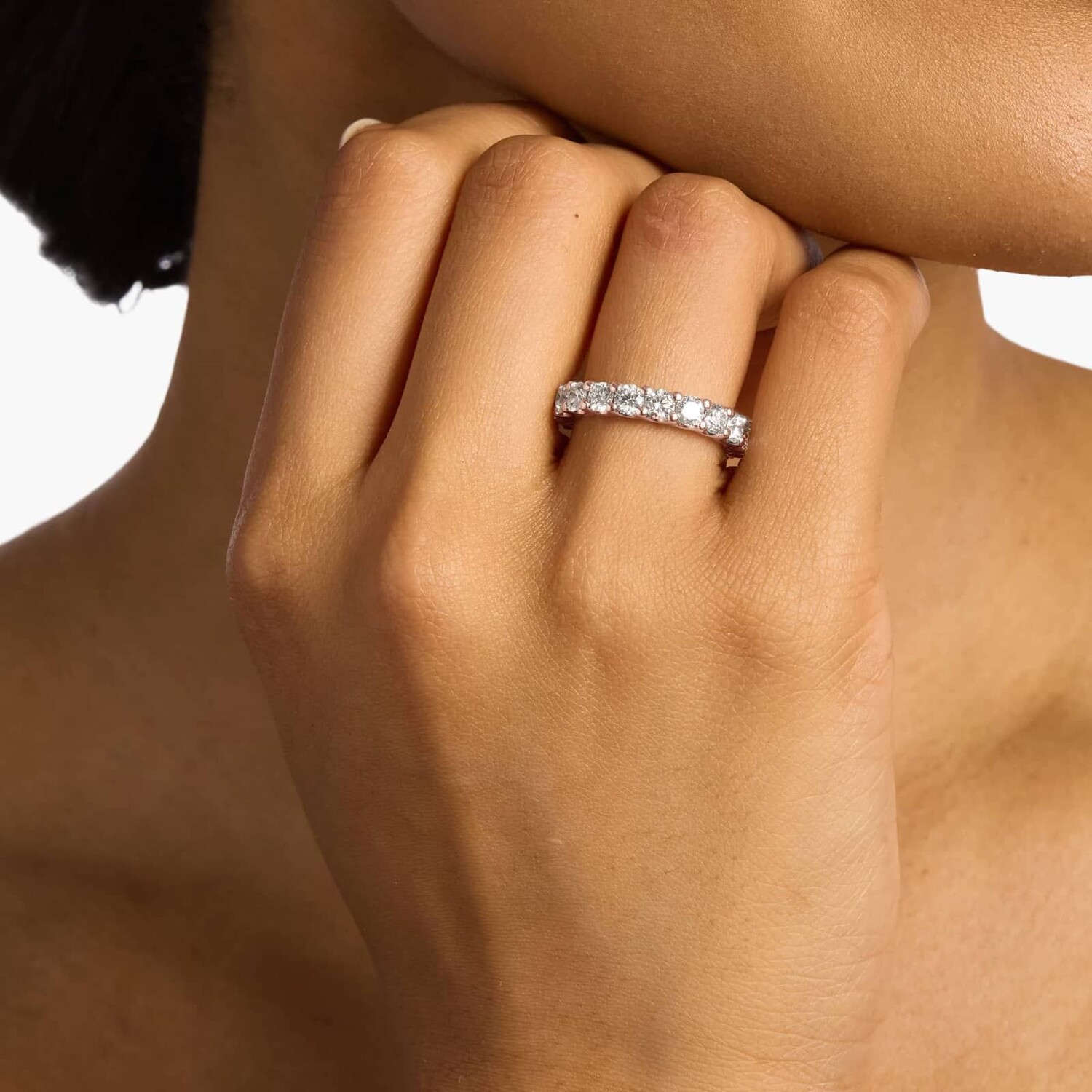 Это бриллиантовое кольцо вечности с выращенными в лаборатории бриллиантами, блестящее во всех отношениях, украшено круглыми бриллиантами в общем крапановом и низкопрофильном дизайне из 14-каратного розового золота. *Количество выращенных в лаборатории бриллиантов и общий вес в каратах будут варьироваться в зависимости от размера кольца. Примечание: изменение размера недоступно.