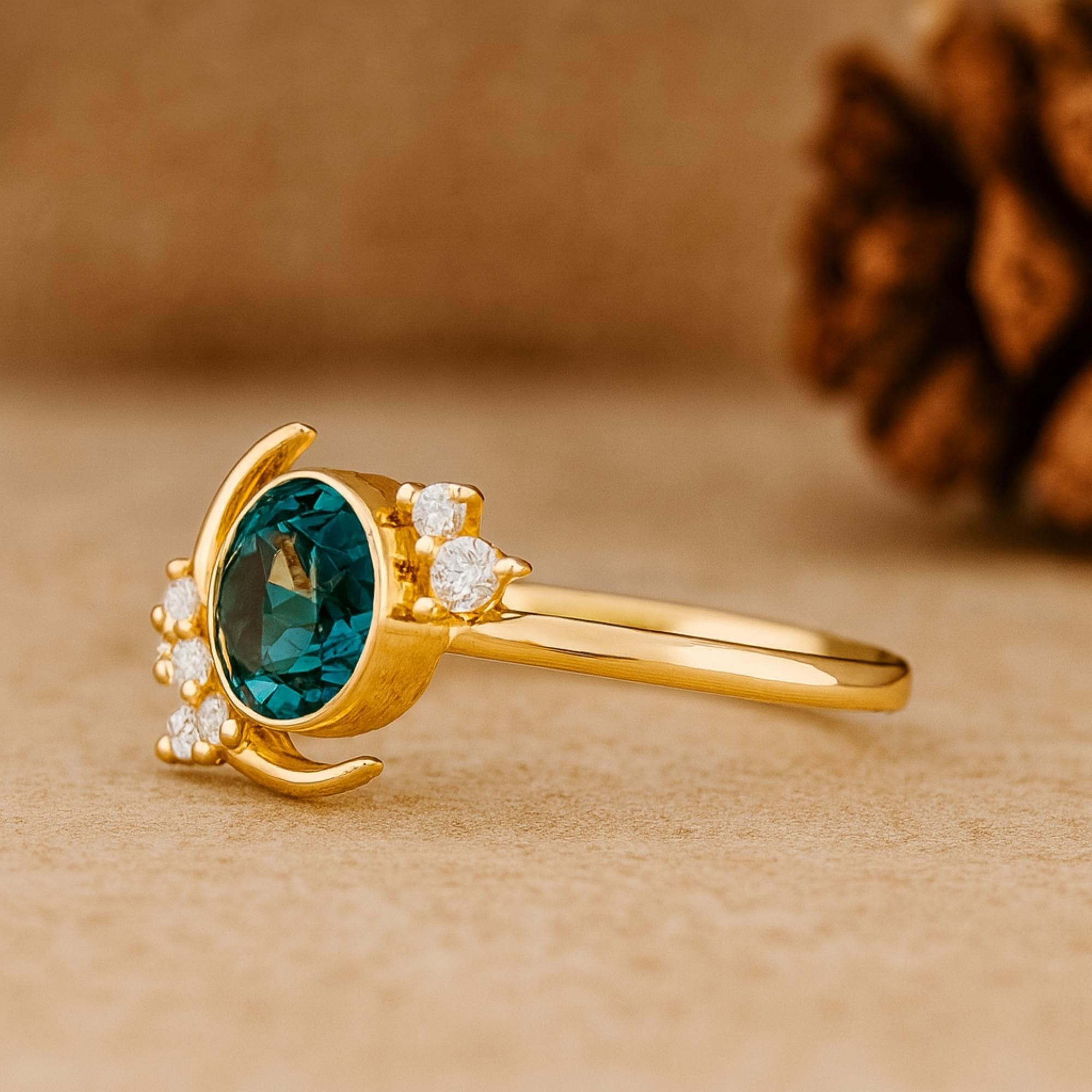 Кольцо с зеленым сапфиром «Солнце и Луна» с кубическим цирконием – Кольцо с небесным драгоценным камнем - Позолоченное серебро 925 пробы, ювелирное украшение, подарок Q розовый