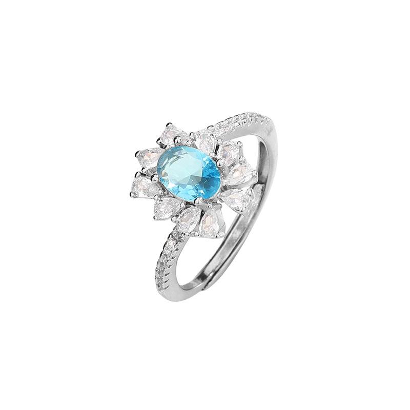 Кольцо с имитацией морского голубого топаза, роскошная замена, прямая трансляция с товарами, яркое, полное бриллиантов, кольцо с синим цветком, женское Adjustable Opening