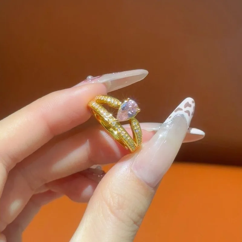 Кольцо с короной в форме капли воды, изысканные украшения с розовыми бриллиантами, универсальная легкая роскошь, высококачественные темпераментные украшения, коврик для ежедневных поездок на работу