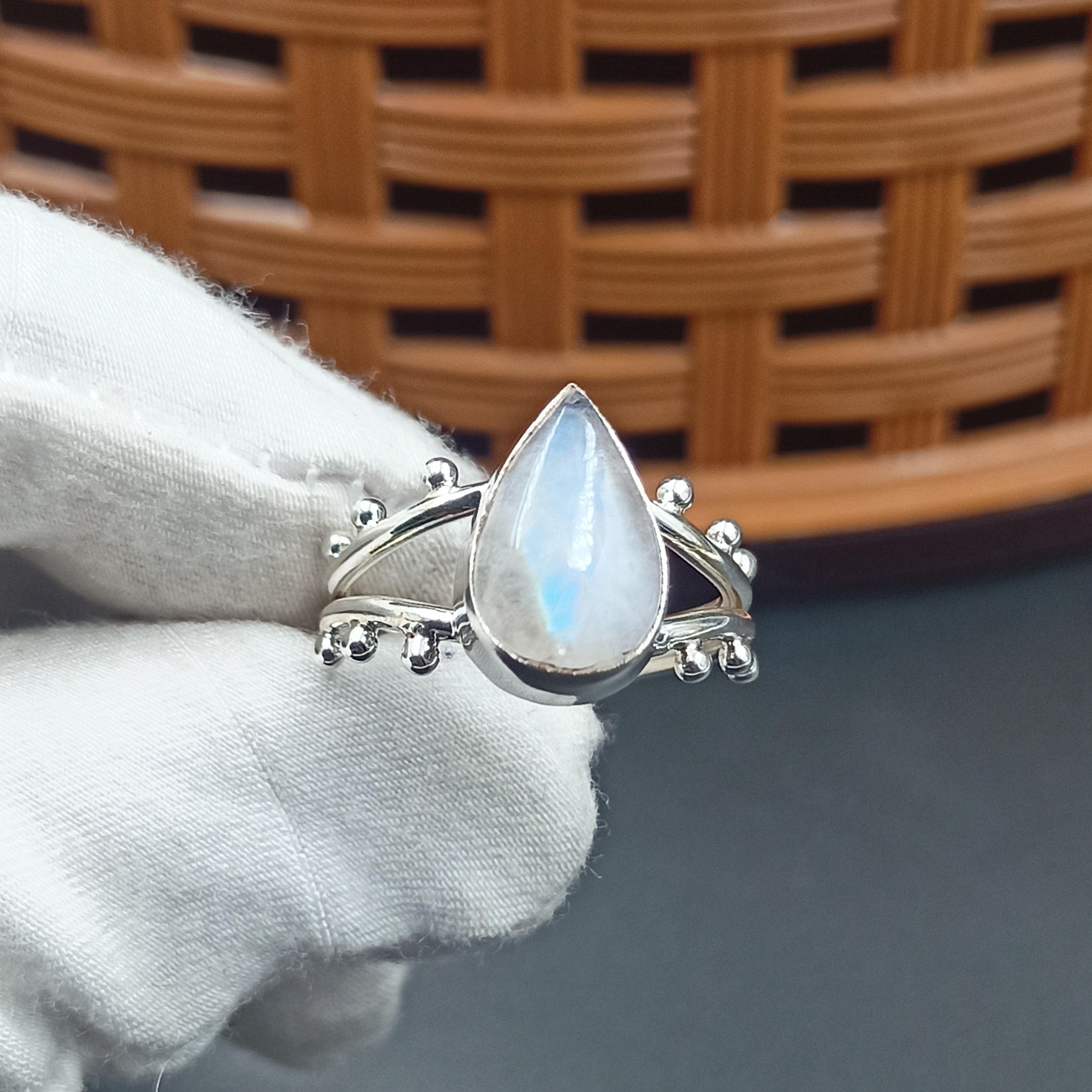 Кольцо с лунным камнем, кольцо в форме груши, кольцо из стерлингового серебра 925 пробы, кольцо с камнем в июне, кольцо ручной работы, эффектное кольцо, кольцо с драгоценным камнем в подарок для нее.