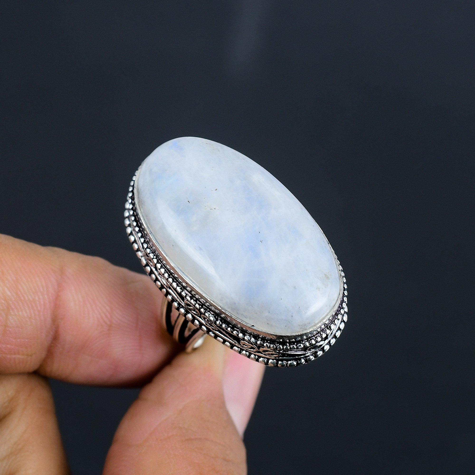Кольцо с лунным камнем, ручная работа, стерлинговое серебро 925 пробы, размер 9 белый