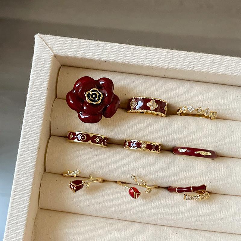 Кольцо Ankara Red Dripping Oil Flower Opening Ring Женское нишевое ретро легкое роскошное элегантное модное универсальное кольцо