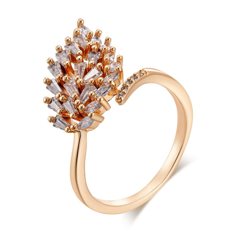 Кольцо Kinel в форме листа с искрящимся цирконием для женщин, регулируемое по размеру кольцо розового золота с открытым концом
