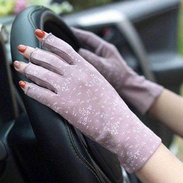 five fingers gloves summer half finger sun protection ladies short anti-uv driving ultra-thin bike riding leakage cotton, Blue;gray