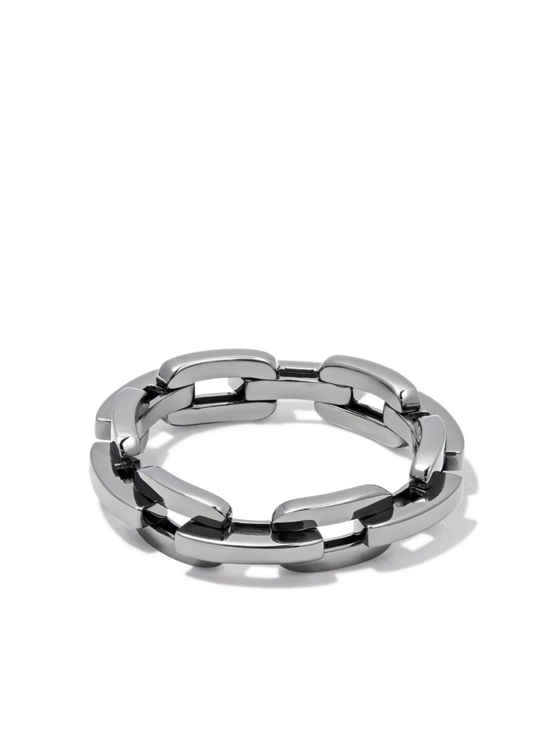18-каратное черное золото, глянцевая фактура и цепочка.
